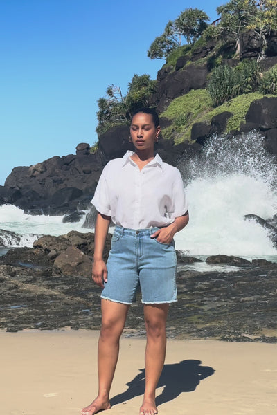 A summertime must-have! Our classic Denim Cut Off Shorts are back now in light blue. Crafted from soft stretch cotton this short will move with your body and be comfortable for everyday wear.