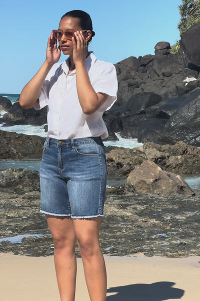 Adrift's classic Denim Cut Off Shorts are calling your name! These simple shorts were designed for everyday wear, simply tuck your favourite blouse or t-shirt into the front for a casual look! The cotton stretch fabric allows these shorts to remain comfortable.
