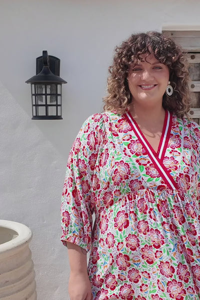 Cairo Billow Sleeve Dress in Moroccan Belle Coral
