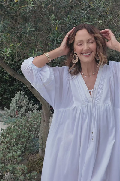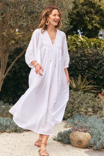 This is a great dress for hot weather the fabric is so light. I should have purchased a size down but because the design is so forgiving I just needed to take the hem up. I bought the the dress as resort wear but it’s perfect for everyday.