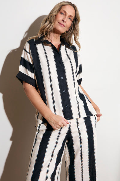 A relaxed essential with timeless appeal, the Carmen Shirt in Shibuya is made from a soft linen-cotton blend. Featuring a button-up front, and rolled cuffs, it’s designed for laid-back yet elevated style.