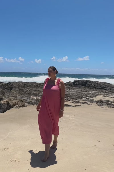 Claire Frill Sun Dress in Flamingo