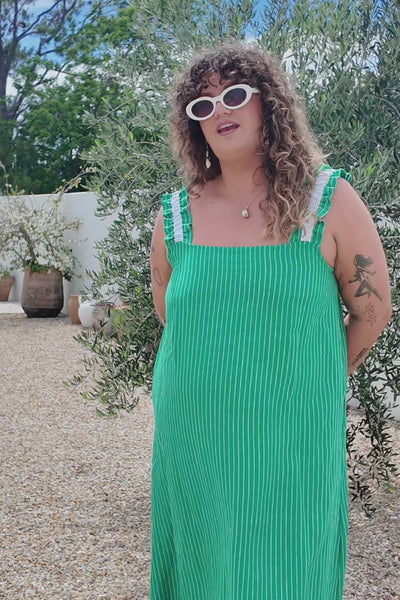 Back by popular demand, the Claire Dress returns in our beloved Emerald City print. Crafted from 100% linen, this standout style features wide shoulder straps, a clean square neckline, and a relaxed A-line silhouette for easy summer wear. The bold green print makes a statement while keeping its classic appeal, offering the perfect mix of structure and softness. A timeless Adrift favourite reimagined for the season.