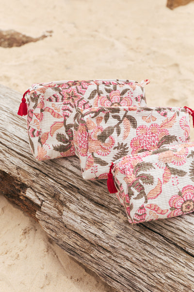 Stay beautifully organised with our Cosmetic Pouch Bundle - three perfectly sized pouches in bespoke Adrift prints. Thoughtfully crafted with gorgeous detailing, they’re the prettiest way to store your everyday essentials.