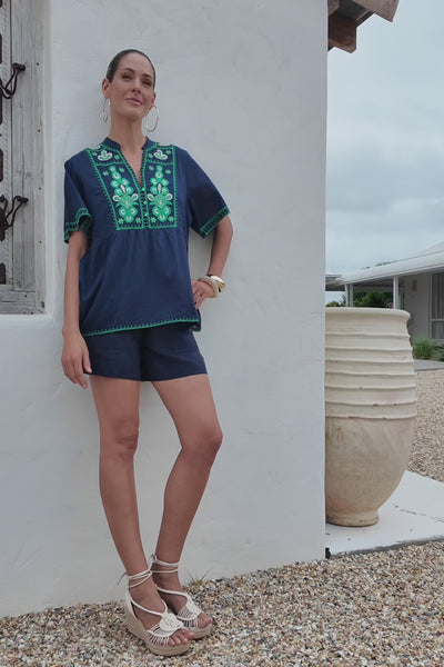 The Elodie Blouse brings striking embroidery into an easy everyday top with gentle flutter sleeves and a relaxed drape. Crafted from 100% cotton and alive with detail, it pairs beautifully with linen, denim and warm summer days.