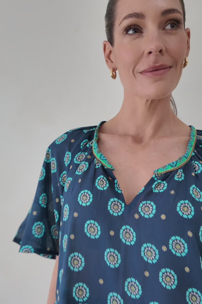 The Ismay Dress blends relaxed ease with a sweet billow sleeve and tiered fall for breezy movement. In the Nerolie print, soft blue adorned with delicate florals brings a fresh, coastal feel to everyday wear.