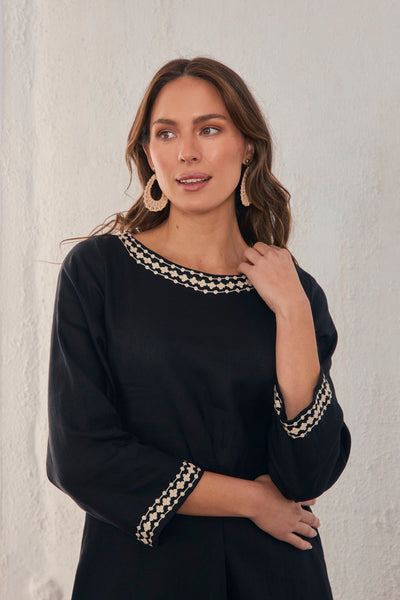 - Black with contrast embroidery detail