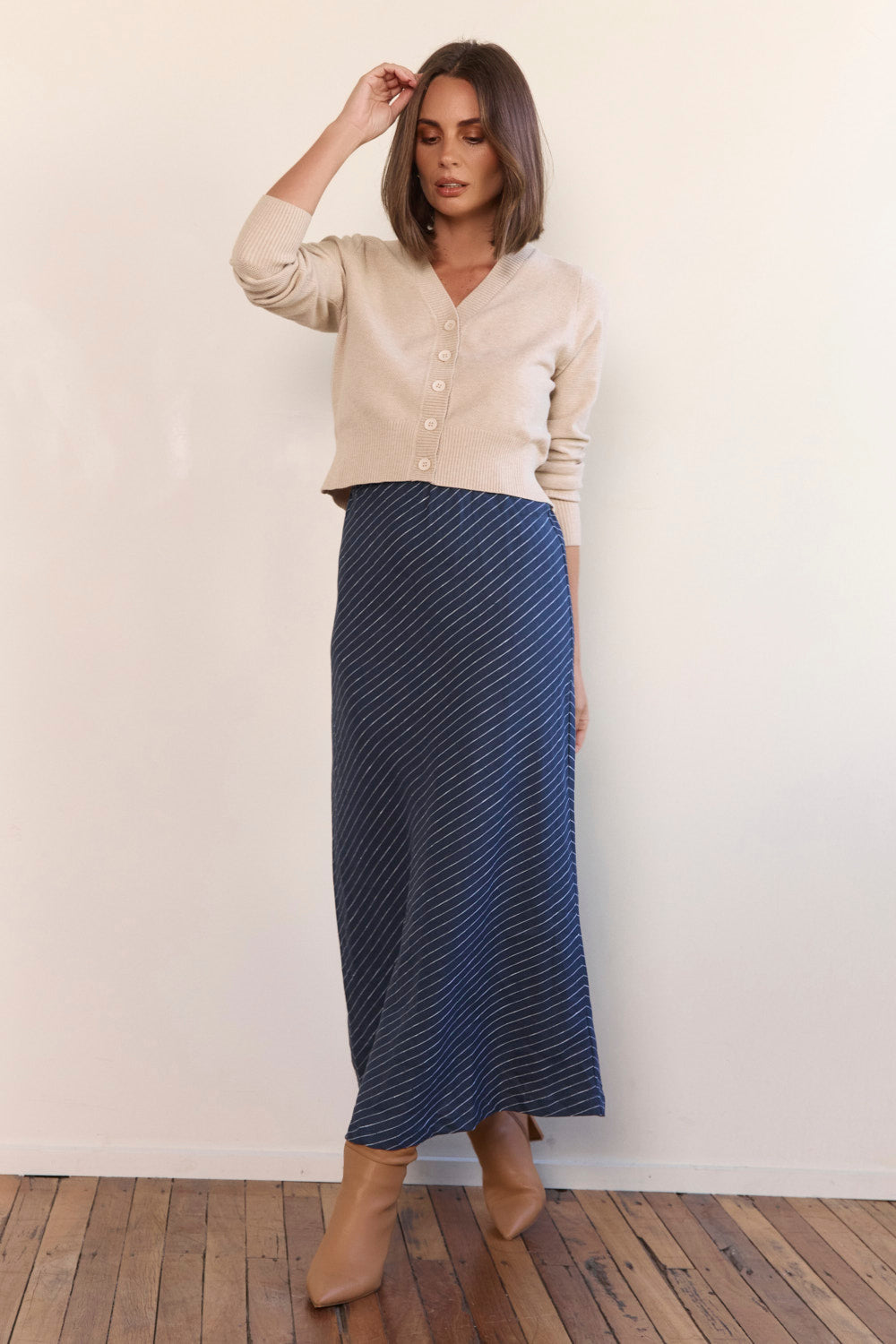 The Katie Bias Cut Skirt drapes beautifully with its slim-line fit, finished with a hidden elastic waist for effortless wear. Proudly designed in Brisbane, it’s the perfect balance of comfort and understated elegance.
