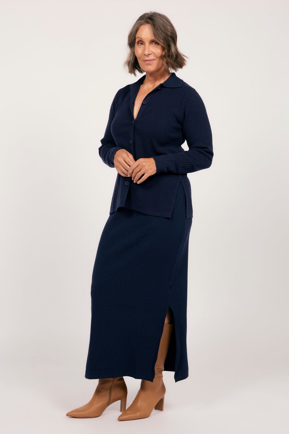 I purchased the skirt and matching top in both cacao and olive green. Super happy with colour, softness of the knit and the side splits really finish the skirt nicely. I took the advice and sized down. Could have even gone a size smaller. Had to exchange on a couple of occasions with some buys. Big shout out to Helen in Customer Service. She is so pleasant and helpful. Makes buying online a breeze!