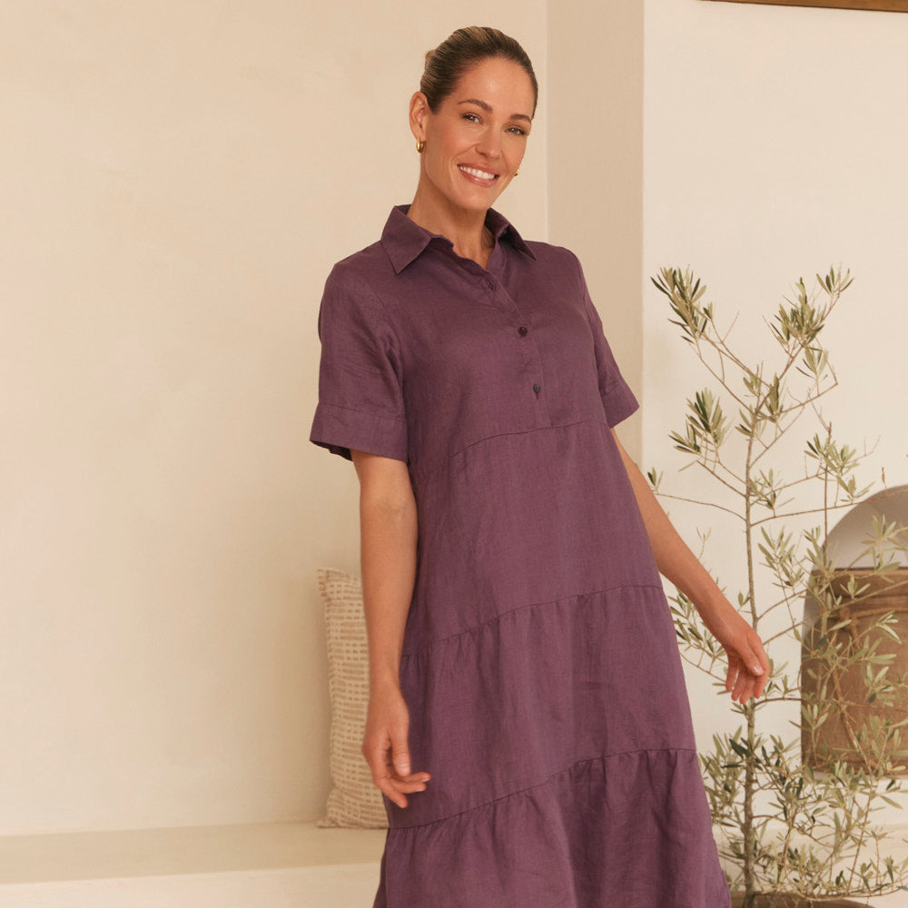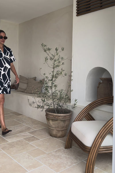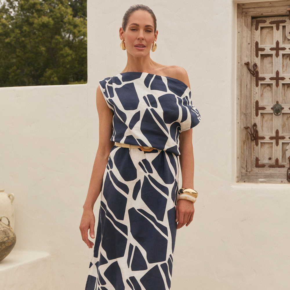 The Leni Short Collared Dress balances clean lines with an artful edge, featuring a relaxed shirt style silhouette and short length that feels modern and wearable. Finished in our Fjorde Navy print, this cotton linen blend showcases an Adrift exclusive design, produced in limited quantities for a truly considered wardrobe piece.