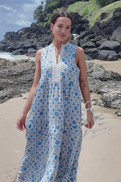 Rita feels soft in 100% cotton, light and beautifully relaxed, brought to life with dreamy blue florals. Designed with a flowy tiered shape and easy movement, it’s made for sunshine, slow days and effortless style.