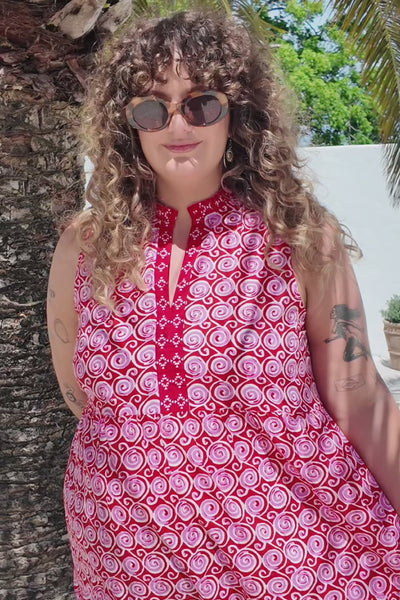 The Rita Frill Dress in Emberlyn brings together a pleated collar, v-neckline and tiered skirt for a look that’s both relaxed and refined. Crafted from breathable cotton and finished in vivid red, it channels carefree Australian energy.