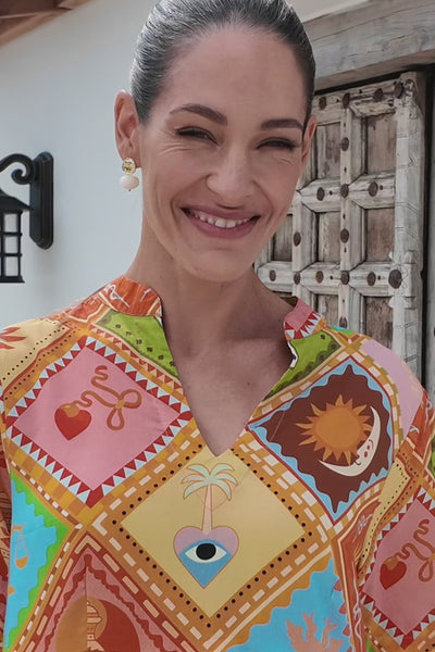Sabre brings easy movement and everyday joy in a tiered silhouette, finished in the playful Sunset Club print and crafted from breathable 100% cotton for all day comfort.