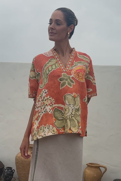 The Samara Blouse features our exclusive Palampore print, designed in Brisbane and produced in limited small batches. Cut in a breathable cotton linen blend, it offers a relaxed silhouette with soft sleeves for effortless everyday wear.