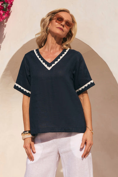 Made from soft, sustainable linen with a relaxed fit and feminine V-neckline, the Samara Linen Blouse in Beachside is detailed with side splits and contrast embroidery for a breezy luxe feel. Designed in Brisbane, it’s an elevated staple for the modern Australian wardrobe.