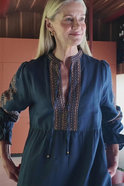 Tanya Embroidered Dress in Navy